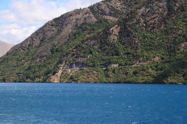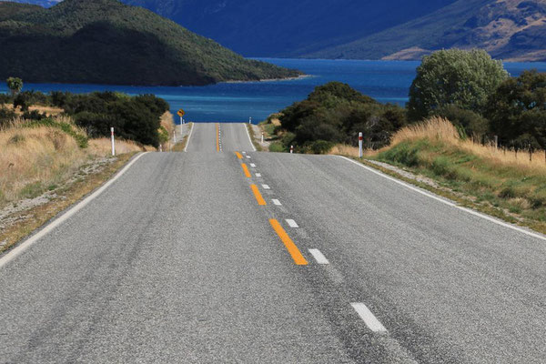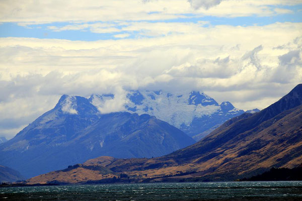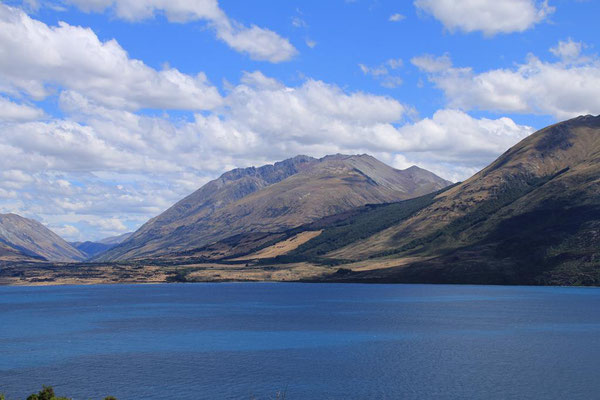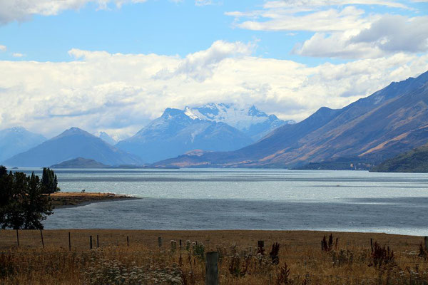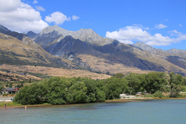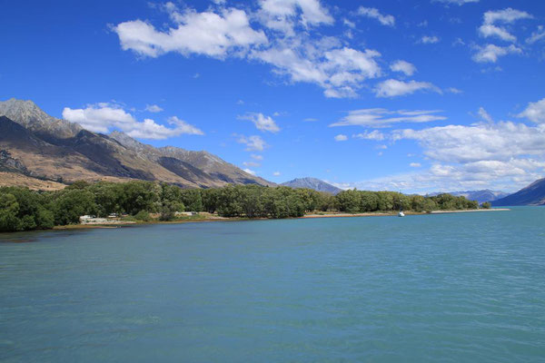 Glenorchy ist eine kleine Siedlung, die nicht viel zu bieten hat, aber ich gehe noch ein Stück am Ufer spazieren und genieße die Atmosphäre. Durch den starken Wind sind heute keine Sandflys da, wie angenehm.